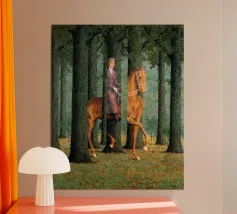 Questo sorprendente dipinto surrealista di René Magritte raffigura una scena di tensione e ambiguità, combinando elementi realistici con accostamenti inaspettati che sfidano la percezione. Attraverso un'attenta composizione e sottili contrasti, Magritte evoca un senso di incertezza, introspezione e mistero poetico. L'atmosfera onirica e stimolante dell'opera la rende un'aggiunta accattivante a soggiorni, studi, studi creativi e interni moderni, dove la sua presenza enigmatica può ispirare riflessioni e conversazioni.