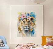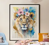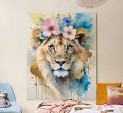 Questo design moderno raffigura un grazioso leone con fiori sulla testa. Disegnato con delicati acquerelli e accenti dorati, unisce la bellezza naturale all'eleganza artistica. Le morbide sfumature di colore e lo stile astratto conferiscono a qualsiasi ambiente un'atmosfera romantica e giocosa, ma allo stesso tempo elegante: un vero e proprio colpo d'occhio per la vostra casa.