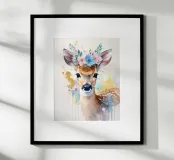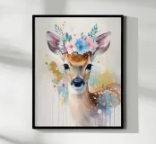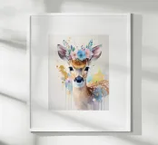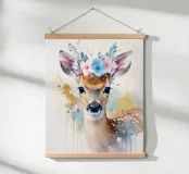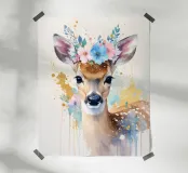 Questo design moderno raffigura un piccolo cervo con fiori sulla testa. Disegnato con delicati acquerelli e accenti dorati, unisce la bellezza naturale all'eleganza artistica. Le morbide sfumature di colore e lo stile astratto conferiscono a qualsiasi ambiente un'atmosfera romantica e giocosa, ma allo stesso tempo elegante: un vero e proprio colpo d'occhio per la vostra casa.