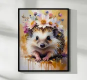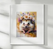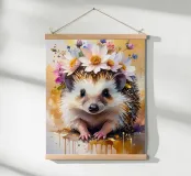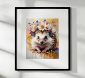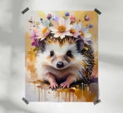 Questo moderno disegno raffigura un piccolo e grazioso riccio con fiori sulla testa. Disegnato con delicati acquerelli e accenti dorati, unisce la bellezza naturale all'eleganza artistica. Le morbide sfumature di colore e lo stile astratto conferiscono a qualsiasi ambiente un'atmosfera romantica, giocosa ed elegante: un vero e proprio colpo d'occhio per la vostra casa.
