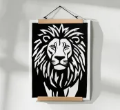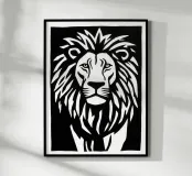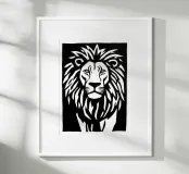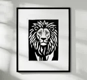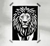 Questo capolavoro monocromatico riduce il re degli animali ai suoi contorni essenziali. L'estetica della silhouette ricorda le xilografie espressioniste degli artisti della Brücke e le rappresentazioni di animali di Franz Marc. La radicale composizione in bianco e nero crea una presenza monumentale: ogni linea della criniera fluente, ogni accento dello sguardo penetrante è perfetto. Le dentellature e le curve dinamiche creano movimento e vivacità nonostante la riduzione bidimensionale. Tecnicamente basato sulla tradizione della linoleografia, ma contemporaneo. Una dichiarazione di età, dignità e saggezza.