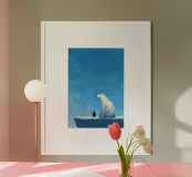 Illustrazione di orso e pinguino sul ghiaccio carta hahnemühle