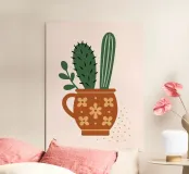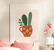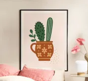 Illustrazione di un cactus in una tazza carta hahnemühle