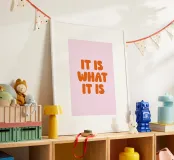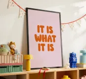 Un'opera d'arte tipografica semplice ma decisa, con la frase "It Is What It Is". Con linee pulite e un layout equilibrato, questo disegno cattura la calma accettazione del flusso della vita.