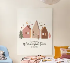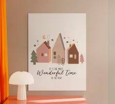 Immagini festive circondano la scritta "It's the Most Wonderful Time of the Year", con personaggi di pan di zenzero, fiocchi di neve e decorazioni a tema natalizio.