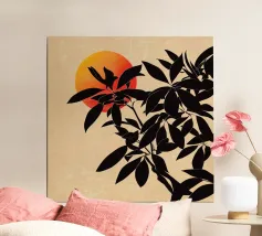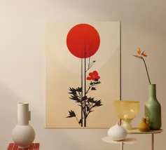 Quest'opera d'arte è caratterizzata da un audace sole rosso e da un ramo botanico scuro e fluente, che fonde forme geometriche e linee organiche. Il design si ispira all'estetica giapponese, fondendo il minimalismo giapponese e l'armonia scandinava. Il contrasto tra il nero profondo e il rosso vibrante e la crema morbida crea una composizione suggestiva e tranquilla. Perfetto per chi apprezza la natura, l'equilibrio e l'arte astratta senza tempo, questo pezzo dona un senso di calma ed eleganza a qualsiasi ambiente.