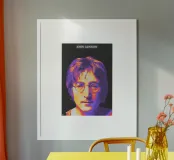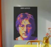 Una rappresentazione luminosa e artistica di John Lennon, con morbide tonalità al neon che sottolineano il suo sguardo calmo e riflessivo.