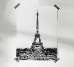 La Torre Eiffel è un punto di riferimento della capitale francese Parigi e simboleggia l'intera Francia in tutto il mondo. Una classica doppia esposizione della torre offre una visione dettagliata dei dettagli architettonici.