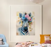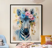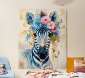 Questo design moderno raffigura una graziosa zebra con fiori sulla testa. Disegnato con delicati acquerelli e accenti dorati, unisce la bellezza naturale all'eleganza artistica. Le morbide sfumature di colore e lo stile astratto conferiscono a qualsiasi ambiente un'atmosfera romantica e giocosa, ma allo stesso tempo elegante: un vero e proprio colpo d'occhio per la vostra casa.