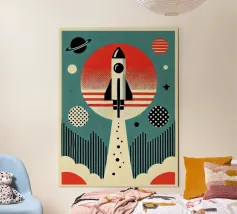 Lancio di un razzo retrò con Ringed Planet carta hahnemühle