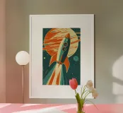 Lancio di un razzo retrò con Ringed Planet carta hahnemühle