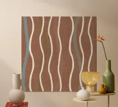 "Retro Wavy Lines Dull Gold PANTONE 17-0935 - Mid Century Modern Geometric" combina motivi ondulatori fluenti con le tonalità ricche e tenui dell'oro opaco. Questo disegno è un omaggio all'estetica moderna della metà del secolo, che offre una miscela di eleganza retrò e raffinatezza contemporanea. Ideale per l'arredamento, le stampe d'arte e i tessuti, aggiunge un tocco caldo e lussuoso a qualsiasi spazio.