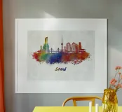 Lo skyline di Seul in acquerello carta hahnemühle