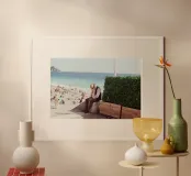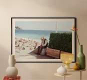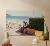 Un signore anziano fa un pisolino sulla spiaggia di Nizza. Il contrasto tra la sua pace e tranquillità e il colorato trambusto della spiaggia è affascinante. Fotografato nel 2023 con la mia Mamiya Sekor.