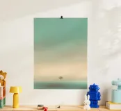 Un albero solitario si erge ai margini di un tranquillo paesaggio da sogno, dove il cielo di colore verde acqua si fonde con un orizzonte beige che sussurra. L'immobilità minimalista di quest'opera d'arte evoca solitudine, introspezione e la sottile forza della natura sospesa nel tempo.