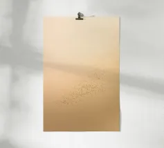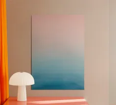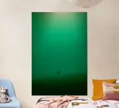 Un albero solitario si erge ai margini di un tranquillo paesaggio da sogno, dove il cielo di colore verde acqua si fonde con un orizzonte beige che sussurra. L'immobilità minimalista di quest'opera d'arte evoca solitudine, introspezione e la sottile forza della natura sospesa nel tempo.