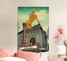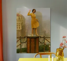 "Manhattan View" è un collage digitale che fonde la fotografia contemporanea con la grandiosità della pittura neoclassica. In quest'opera, diverse belle donne dell'epoca sono ritratte in cima a un grattacielo, affascinate dalla vista abbagliante di tutta Manhattan. I loro gesti e le loro espressioni interagiscono armoniosamente con l'ambiente urbano, evocando l'eleganza e l'eccitazione di un'epoca passata e celebrando al contempo la bellezza e il dinamismo della città moderna."