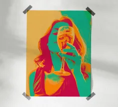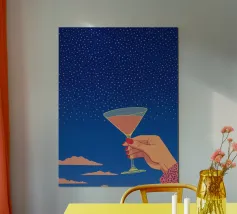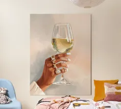 Un'elegante opera d'arte che cattura l'eleganza di una serata tra ragazze: una mano femminile con unghie rosa regge un bicchiere di gin e brinda con tenui colori pastello. Perfetta per qualsiasi arredamento moderno, irradia rilassate vibrazioni estive e gioia di vivere.