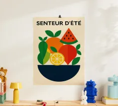 Con "Matière Sucrée", la frutta diventa una festa. Forme semplici, colori vivaci e una composizione vibrante e pop: questo poster sprizza gioia grafica da tutti i pori. Si intravedono un'arancia, una pera, un mango, un limone... ma soprattutto si percepisce l'energia pura del colore e la dolcezza dello zucchero. Ideale per risvegliare una parete, una mattina, uno stato d'animo. È la vita in piena saturazione.
