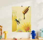 La dolcezza della natura in ogni dettaglio! Questo disegno raffigura api che raccolgono nettare e miele deliziosi.