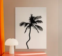 Questo motivo minimalista a forma di palma in bianco e nero dona serenità tropicale a qualsiasi ambiente. La palma solitaria su uno sfondo chiaro trasmette una sensazione di libertà e di estate e si adatta perfettamente a un arredamento moderno e minimalista. Ideale come murale, cuscino o cover per cellulare, questo disegno aggiunge un tocco di esotismo e relax a qualsiasi stanza. Per tutti coloro che desiderano un'atmosfera tropicale nella propria casa e apprezzano la semplice eleganza.