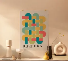 Una varietà di linee spesse e sottili si incrociano e si sovrappongono su uno sfondo chiaro, creando un disegno intricato. Segmenti colorati nei toni del blu, del verde, del giallo e del viola aggiungono un vibrante contrasto alle linee nere.