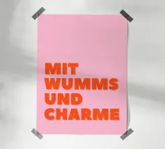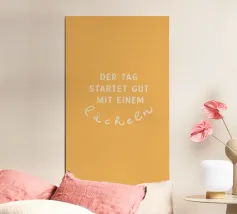 Questo poster vi dà il benvenuto in arancione brillante e vi motiva con una frase chiara. "MOIN" in alto, "DU PACKST DAS" in forma ricurva sotto, come un sorriso che vi accompagnerà per tutta la giornata.