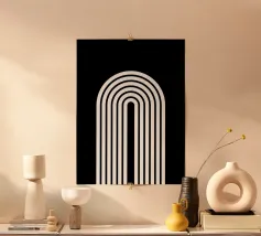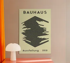 Questo straordinario design proveniente dalla mostra Bauhaus del 1919 combina la geometria minimalista con un'estetica moderna e senza tempo. La precisa disposizione delle linee su uno sfondo nero profondo crea un affascinante effetto tridimensionale. Perfetto per prodotti come murales, magliette, tazze o cuscini, questo motivo porta l'iconico stile Bauhaus nella vostra casa. Un must per gli amanti dell'arte moderna, del design grafico e della decorazione elegante.