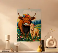 MUCCHE IN UN PRATO DI FIORI SELVATICI carta hahnemühle