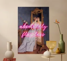 Celebrate l'autoispirazione con "I Am My Own Muse". Questa accattivante stampa pop art offre una potente rivisitazione di un dipinto classico, con una donna elegante in un fluente abito rosa che bacia teneramente il proprio riflesso in uno specchio dorato. Il testo bianco e deciso "Sono la mia musa" sovrasta l'immagine, trasformando questa scena senza tempo in una profonda dichiarazione di fiducia in se stessi e indipendenza artistica. I cuori disegnati a mano in alto aggiungono un tocco contemporaneo e affettuoso. Perfetto per celebrare la cura di sé e l'emancipazione in qualsiasi interno moderno. Realizzato con un'eccezionale risoluzione di 7000x5000 pixel.