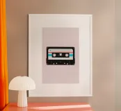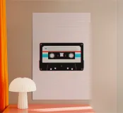 Nastro a cassetta con effetto glitch su sfondo a righe carta hahnemühle