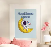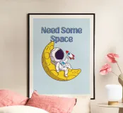 Un affascinante disegno di astronauta con la scritta "Need Some Space" - umoristico, giocoso e perfetto per gli appassionati di spazio. Il piccolo astronauta sulla luna con un razzo simboleggia la libertà, i sogni e la sete di avventura. Questo poster spaziale combina l'arte dei cartoni animati, l'illustrazione delle galassie e il design cosmico con la cultura pop moderna. Ideale per decorare la stanza dei bambini, le pareti dell'ufficio o come idea regalo. Popolare come Astronaut Wall Art, Outer Space Print, Funny Space Poster, Rocket Illustration, Moon Art Print, Science Fiction Art, Cosmic Wall Decor, Galaxy Theme Art, Minimal Space Design, Regalo per gli amanti dell'astronautica