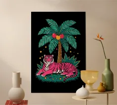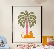 Orange jungle cat with palm tree carta hahnemühle