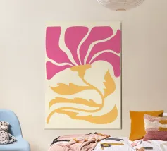 Un'atmosfera giocosa alla Oui Oui sulle pareti, dove il rosa e l'arancione scorrono in onde retrò, trasformando ogni angolo in una dichiarazione di stile moderno.