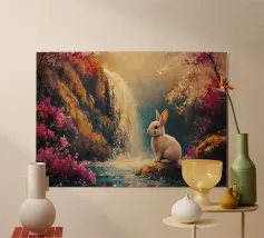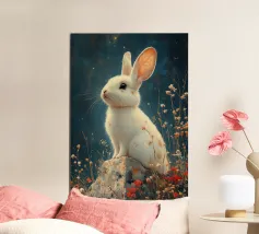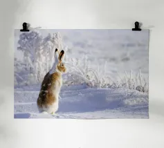 Paesaggio innevato con un coniglio in una foresta mistica carta hahnemühle