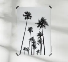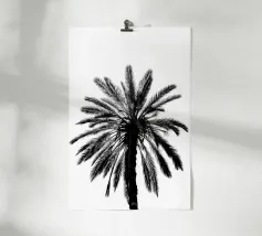 Due palme botaniche in bianco e nero in un parco di Marrakesh, Marocco.