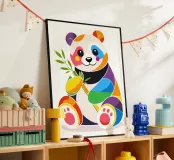Panda colorato con bambù - Design allegro carta hahnemühle