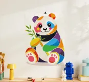 Illustrazione colorata di un simpatico panda con un ramo di bambù. Il motivo giocoso combina cordialità, calma e aree di colore moderne - ideale per i fan dei panda e per i disegni creativi di animali.