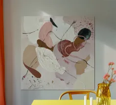 Immergetevi nel mondo dell'arte astratta con questa affascinante opera che affascina con la sua fusione di colori pastello e linee ampie. La combinazione di colori delicati e pennellate potenti conferisce a quest'opera un equilibrio di energia e calma. Perfetta per creare un accento in spazi moderni, studi o uffici.