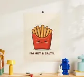 Patatine fritte con faccia felice " Io sono caldo e salato " carta hahnemühle