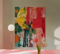 "Bold colors, sharp angles, and dynamic movement, where geometry meets imagination in a modern abstract dance."