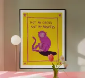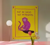 Scimmia colorata con citazione "Non il mio circo, non le mie scimmie".