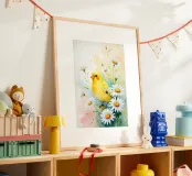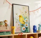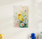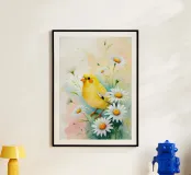 Pittura digitale di canarini gialli e margherite bianche carta hahnemühle