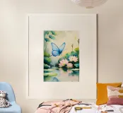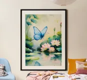 Pittura digitale di farfalla e ninfee rosa carta hahnemühle