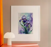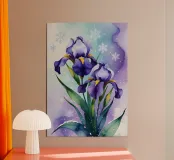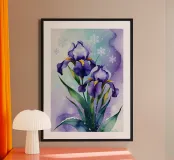 Pittura digitale di fiori di iris viola e fiocchi di neve carta hahnemühle