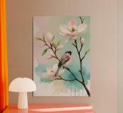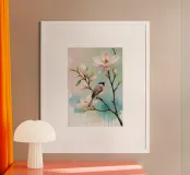 Pittura digitale di Fringuello e Magnolia carta hahnemühle