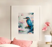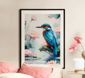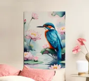 Pittura digitale di un martin pescatore e di un loto carta hahnemühle