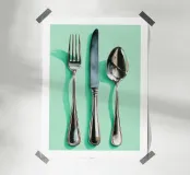 Posate d'argento su acquerello alla menta carta hahnemühle