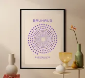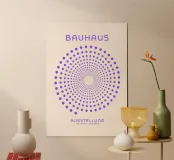 Un poster vibrante e accattivante che illustra le esplorazioni matematiche e ottiche del movimento Bauhaus. Il disegno presenta un'ipnotica trama concentrica di punti uniformi in un viola brillante e vivace, che si sviluppa a spirale verso l'interno per creare un'intensa illusione di profondità e movimento. La grafica è pulita e decisa, ancorata al testo "BAUHAUS AUSSTELLUNG JULI-SEPT 1919-1923". Questo download digitale di alta qualità (7000x5000 pixel, 300 dpi) garantisce una chiarezza eccezionale e una saturazione dei colori superiore, perfetta per uno spazio moderno, massimalista o di metà secolo alla ricerca di un tocco di colore.