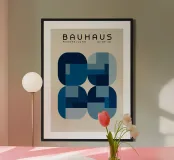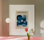 Poster per la mostra Bauhaus, quadrati geometrici astratti blu carta hahnemühle
